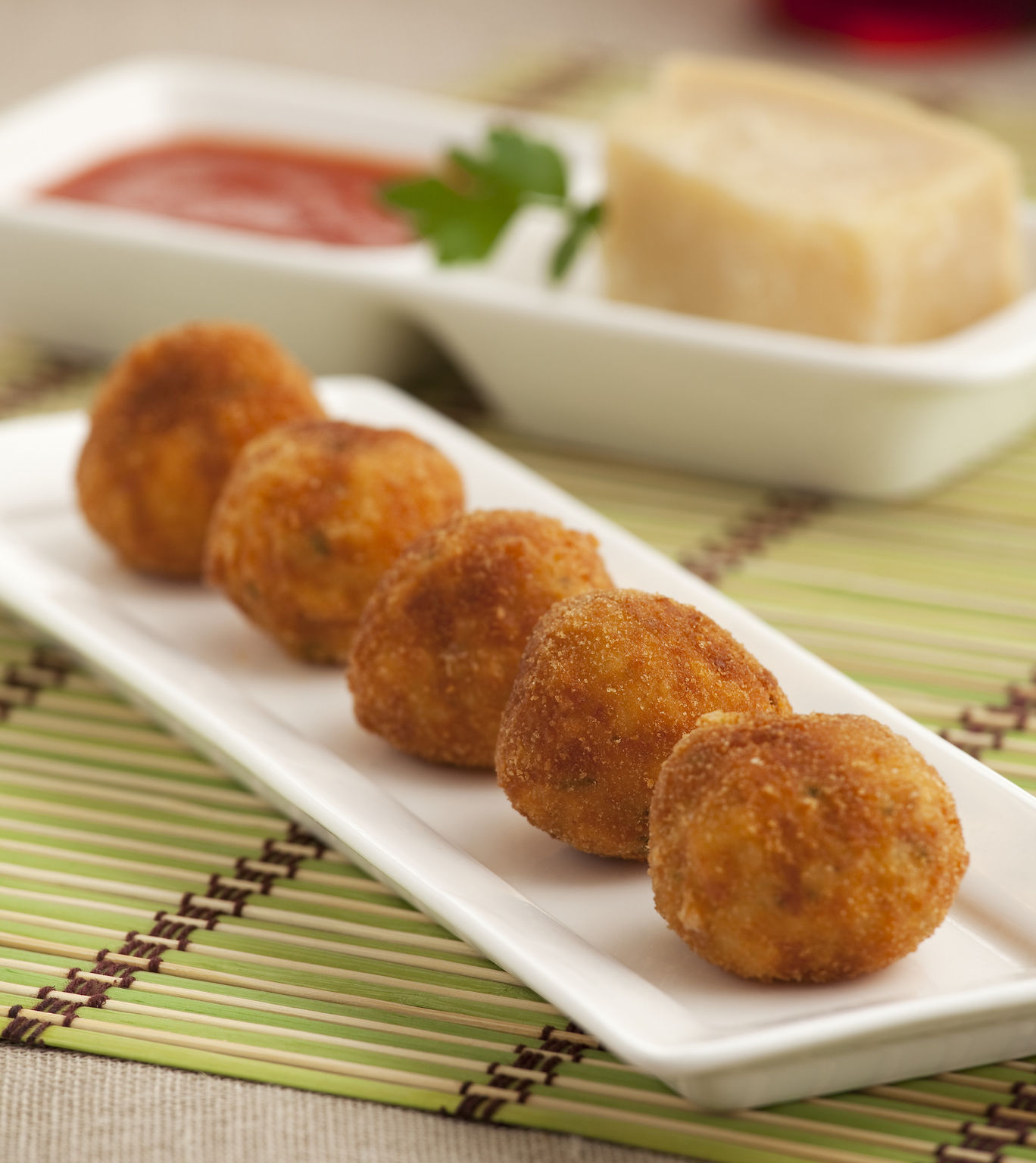 - Poner la harina en una fuente alta y el pan rallado en otra. Con ayuda de 2 cucharas, formar bolas del tamaño de una nuez y rebozar con harina, huevo batido y pan rallado. Freírlas en abundante aceite caliente hasta que estén bien doradas y crujientes y escurrirlas sobre papel de cocina. Servir calientes o frías.